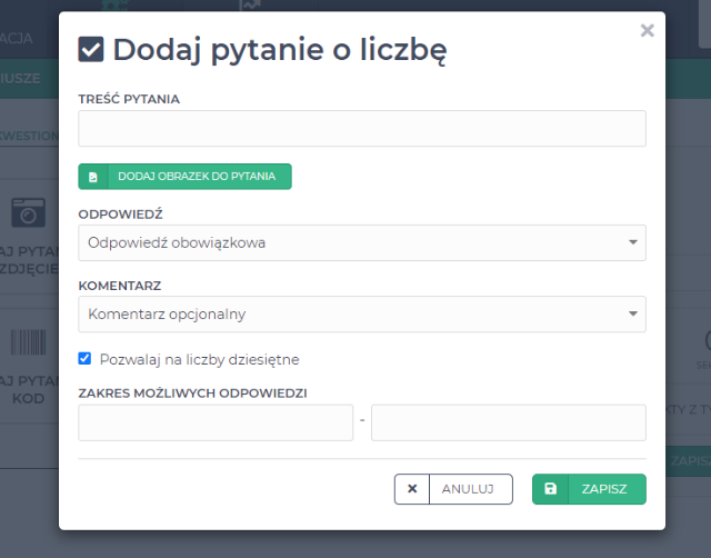 Do dyspozycji managerów zarządzających pozyskiwaniem danych z terenu jest wiele rodzajów pytań – o teksty, zdjęcia, kody kreskowe, wyboru itd.